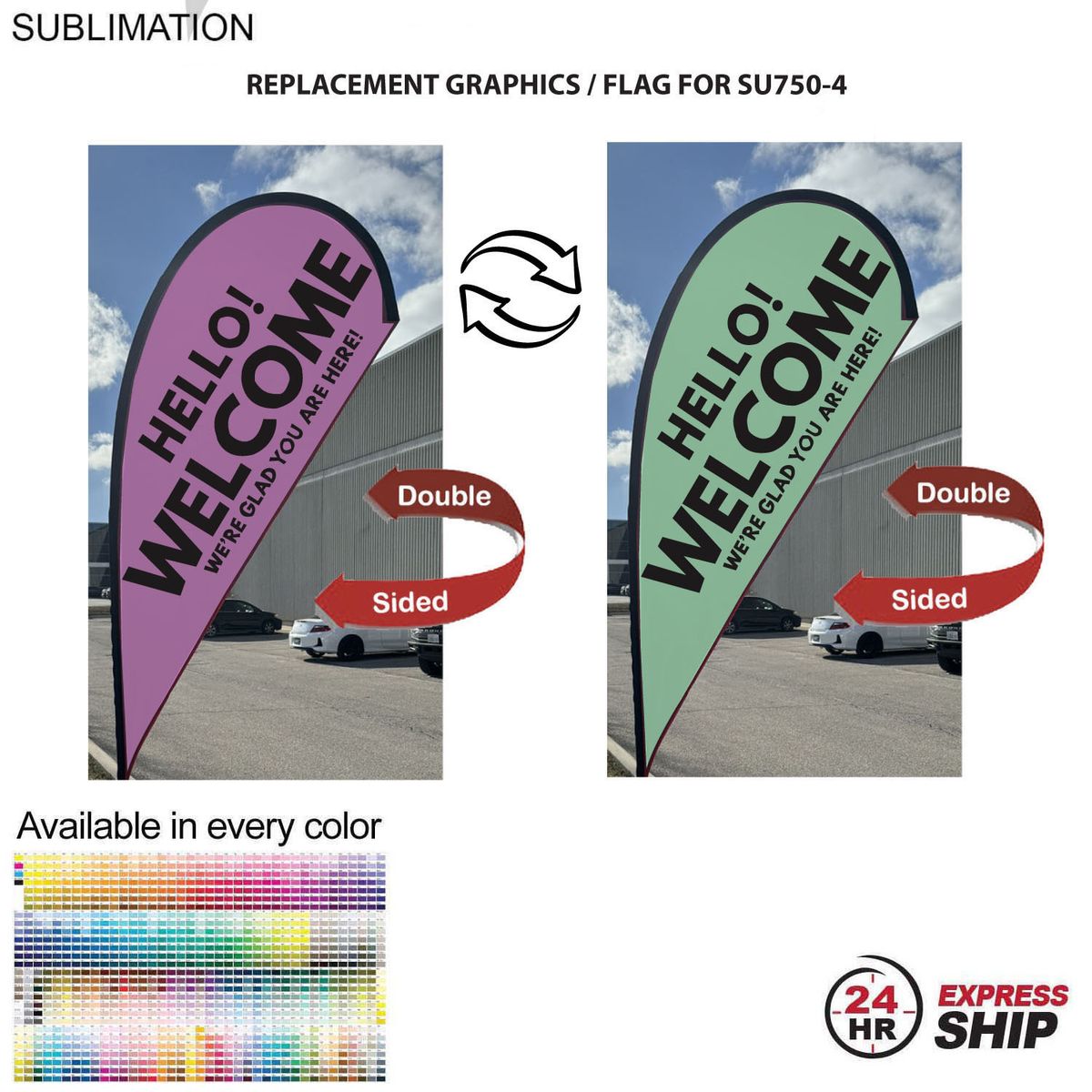 - Replacement Flag with Double Sided graphics will work for our sku # SU750-4 Tear Drop Flag Kit.